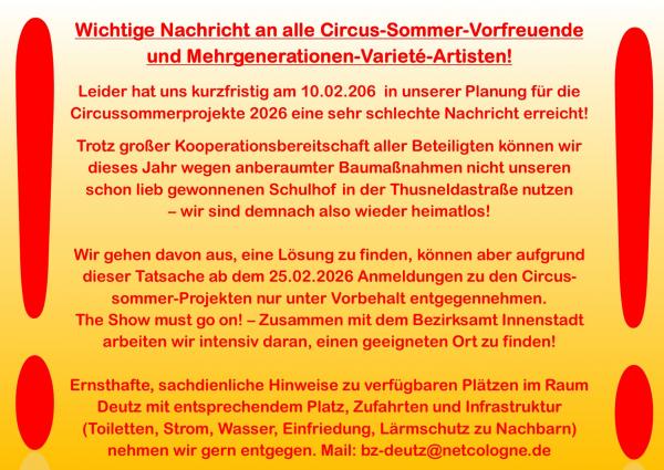 Integrativer Deutzer Circuscommer 2026 demnächst hier!