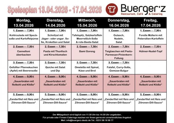 Essensplan der Woche 13.04.2026 bis 17.04.2026