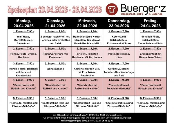 Essensplan der Woche 20.04.2026 bis 24.04.2026